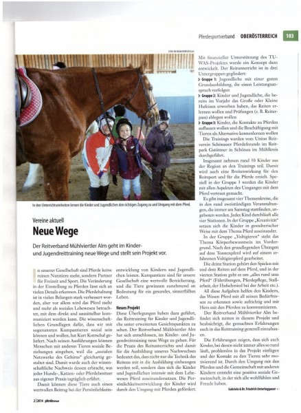 Der Umgang mit Pferden kann für Kinder und Jugendliche eine ganz besondere und wertvolle Art der Freizeitgestaltung sein. Durch die Initiative von Fritz Kriechbaumer erhalten insbesondere Kinder und Jugendliche aus Familien, „wo nicht alles so rund rennt“, die Möglichkeit, gemeinsam mit Schulpferden des Vereins das Erlebnis Pferd & Natur zu entdecken. Vom Reiten bis zur Pflege, vom verantwortlichen Umgang mit den Tieren bis zu Spiel und Spaß in der freien Natur ist eine ganze Palette an Aktivitäten vorgesehen. Die Betreuung erfolgt durch ausgebildete Reittrainer und eine Sozialpädagogin mit dem Ziel, nicht nur die körperliche Wahrnehmung zu verbessern, sondern auch Ängste abzubauen und das Selbstvertrauen zu stärken.